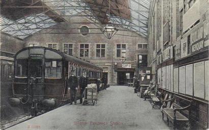 Keywords: GWR SRM 45 Penzance.jpg en Great Western Railway steam rail motor 45 at Penzance A postcard in the Geof Sheppard Collection ca 1915 Author PD-old Trains at Penzance railway station GWR steam rail motors Trains of Great Western Railway on the Cornish Main Line Postcards of Cornwall Postcards of railway stations in the United Kingdom |