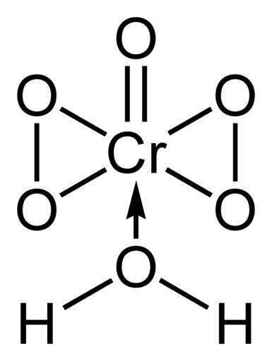 Keywords: H2O-CrO5-2D.png Structural formula of the complex of chromium peroxide CrO<sub>5</sub> with water H<sub>2</sub>O H<sub>2</sub>O-CrO<sub>5</sub> Structure drawn in http //www cambridgesoft com/software/ChemBioDraw/ ChemBioDraw Ultra 12 0 Own 2010-06-12 Ben Mills Benjah-bmm27 Images by Ben Mills Chromium peroxide Aqua complexes |
