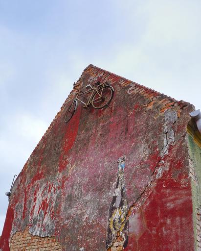 Keywords: házfal old bike cozy creative decor ruined