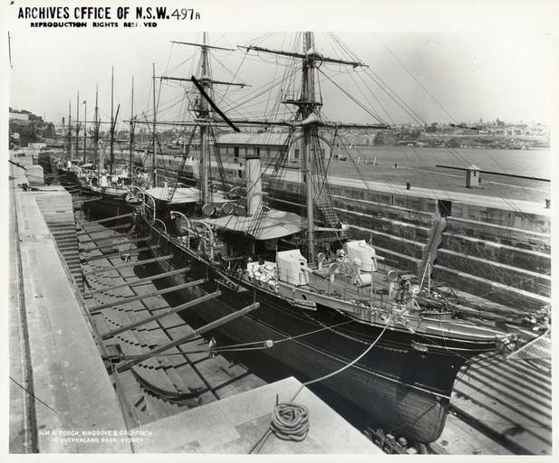 | Keywords: archives state records nsw staterecordsnsw newsouthwales blackandwhite hms torch hmstorch hms ringdove hmsringdove hms goldfinch hmsgoldfinch sutherland dock sutherlanddock sydney people sailors ships black and white H.M.S. Torch, Ringdove and Goldfinch in Sutherland Dock, Sydney Dated: Year only 1898 Digital ID: 4481_a026_000456 Rights: www.records.nsw.gov.au/about-us/rights-and-permissions  We'd love to hear from you if you use our photos/documents.  Many other photos in our collection are available to view and browse on our website using Photo Investigator. H.M.S. Torch, Ringdove and Goldfinch in Sutherland Dock, Sydney Dated: Year only 1898 Digital ID: 4481_a026_000456 Rights: www.records.nsw.gov.au/about-us/rights-and-permissions  We'd love to hear from you if you use our photos/documents.  Many other photos in our collection are available to view and browse on our website using Photo Investigator. |