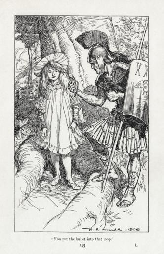 Keywords: H. R. Millar - Rudyard Kipling - Puck of Pook's Hill 11.png H R Millar's 11th illustration to the original edition of Rudyard Kipling's Puck of Pook's Hill from the chapter A Centurion of the Thirtieth 'You put the bullet into that loop' 1906 Harold Robert Millar Puck of Pook's Hill First reprint October 1906 London Macmillan and Co Limited 1906 Harold Robert Millar 1869-1940 Restoration by Adam Cuerden PD-old-70-1923 For other images from the book see Category Puck of Pook's Hill File H R Millar - Rudyard Kipling - Puck of Pook's Hill 11 jpg - Restoration JPEG File H R Millar - Rudyard Kipling - Puck of Pook's Hill 11 png - Restoration PNG File Original Scan - H R Millar - Rudyard Kipling - Puck of Pook's Hill 11 tif - Original scan TIFF DEFAULTSORT Puck of Pook's Hill 011P Puck of Pook's Hill Adam Cuerden's restorations |