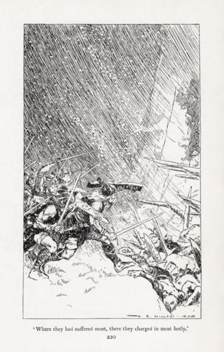 Keywords: H. R. Millar - Rudyard Kipling - Puck of Pook's Hill 16.png H R Millar's 16th illustration to the original edition of Rudyard Kipling's Puck of Pook's Hill from the chapter The Winged Hats Where they had suffered mosr there they charged in most hotly 1906 Harold Robert Millar Puck of Pook's Hill First reprint October 1906 London Macmillan and Co Limited 1906 Harold Robert Millar 1869-1940 Restoration by Adam Cuerden PD-old-70-1923 For other images from the book see Category Puck of Pook's Hill File H R Millar - Rudyard Kipling - Puck of Pook's Hill 16 jpg - Restoration JPEG File H R Millar - Rudyard Kipling - Puck of Pook's Hill 16 png - Restoration PNG File Original Scan - H R Millar - Rudyard Kipling - Puck of Pook's Hill 16 tif - Original scan TIFF DEFAULTSORT Puck of Pook's Hill 016P Puck of Pook's Hill Adam Cuerden's restorations |