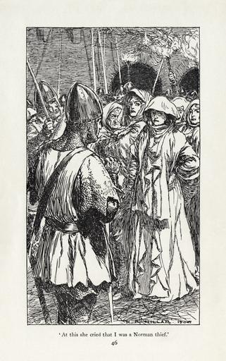 Keywords: H. R. Millar - Rudyard Kipling - Puck of Pook's Hill 3.png H R Millar's 3rd illustration to the original edition of Rudyard Kipling's Puck of Pook's Hill from the chapter Young Men at the Manor 'At this she cried that I was a Norman thief' 1906 The vast majority is from <br /> Harold Robert Millar Puck of Pook's Hill First reprint October 1906 London Macmillan and Co Limited 1906 A small area of misinking about 50x50px is from the 1920 reprint of the Pocket Edition also Macmillan Harold Robert Millar 1869-1940 Restoration by Adam Cuerden PD-old-70-1923 For other images from the book see Category Puck of Pook's Hill File H R Millar - Rudyard Kipling - Puck of Pook's Hill 3 jpg - Restoration JPEG File H R Millar - Rudyard Kipling - Puck of Pook's Hill 3 png - Restoration PNG File Original Scan - H R Millar - Rudyard Kipling - Puck of Pook's Hill 3 tif - Original scan TIFF File Original Scan 2 - H R Millar - Rudyard Kipling - Puck of Pook's Hill 3 tif - Original scan 2 TIFF Used for an approximately 50x50px area to get around some missing ink A terrible copy overall DEFAULTSORT Puck of Pook's Hill 003P Puck of Pook's Hill Adam Cuerden's restorations |