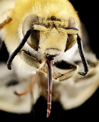 | Keywords: taxonomy:binomial=habropoda excellens taxonomy:binomial=habropodaexcellens habropoda excellens habropodaexcellens habropoda utah usa anthophorini bee bees usgs usgsbiml droege male макросъемка makro マクロ природа natur 自然 الطبيعة 大自然 naturaleza natura насекомое insekt الحشرة 昆蟲 insectos native bee nativebee surreal animal depth of field black background Habropoda excellens, Three spotted Digger Bee, specimen collected by K. Moredock in Utah, USA Digger Bees in the genus Habropoda occur around the world across middle northern latitudes and are usually plant specialists, collecting pollen from only a small number of all the plant species that might be available. While in this book we have talked about the numerous species of bees that lay their eggs in the nests of other bees to the ultimate demise of the nesting species’ egg or young, we haven’t mentioned all the other insects that also parasitize the nests of bees. One such group is Meloid Beetles, which can commonly be seen as adults lounging around on flowers. Unlike other grublike beetles, newly hatched Meloids are very mobile and because of that scientists were compelled to give this novel life stage the name triungulin. Triungulins from a Meloid species in California, USA cleverly produce the female pheromone of the Silver Digger Bee (Habropoda pallida), a more uniformly colored relative of our checkerboard species here. The triungulins gather together and form a bee-ish looking cluster at the end of a plant stem. A male bee, expecting an easy mating opportunity, alights on the mass and the triungulins jump on board. Traveling to an appropriate female bee next time and mating the not so cute little triungulins jump aboard the female for a ride back to her nest. At this point, friends, our lovely triungulins commence to slaughter and eat all the bee babies, set up house and eat all the bee food at their leisure. Good thing we have evolved out of this sort of thing…or have we? ~~~~~~~~~~{{{{{{0}}}}}}~~~~~~~~~~ All photographs are public domain, feel free to download and use as you wish. Photography Information: Canon Mark II 5D, Zerene Stacker, Stackshot Sled, 65mm Canon MP-E 1-5X macro lens, Twin Macro Flash in Styrofoam Cooler, F5.0, ISO 100, Shutter Speed 200 Further in Summer than the Birds Pathetic from the Grass A minor Nation celebrates Its unobtrusive Mass. No Ordinance be seen So gradual the Grace A pensive Custom it becomes Enlarging Loneliness. Antiquest felt at Noon When August burning low Arise this spectral Canticle Repose to typify Remit as yet no Grace No Furrow on the Glow Yet a Druidic Difference Enhances Nature now -- Emily Dickinson Want some Useful Links to the Techniques We Use? Well now here you go Citizen: Basic USGSBIML set up: www.youtube.com/watch?v=S-_yvIsucOY USGSBIML Photoshopping Technique: Note that we now have added using the burn tool at 50% opacity set to shadows to clean up the halos that bleed into the black background from "hot" color sections of the picture. www.youtube.com/watch?v=Bdmx_8zqvN4 PDF of Basic USGSBIML Photography Set Up: ftp://ftpext.usgs.gov/pub/er/md/laurel/Droege/How%20to%20Take%20MacroPhotographs%20of%20Insects%20BIML%20Lab2.pdf Google Hangout Demonstration of Techniques: plus.google.com/events/c5569losvskrv2nu606ltof8odo or www.youtube.com/watch?v=4c15neFttoU Excellent Technical Form on Stacking: www.photomacrography.net/ Contact information: Sam Droege sdroege@usgs.gov 301 497 5840 Habropoda excellens, Three spotted Digger Bee, specimen collected by K. Moredock in Utah, USA Digger Bees in the genus Habropoda occur around the world across middle northern latitudes and are usually plant specialists, collecting pollen from only a small number of all the plant species that might be available. While in this book we have talked about the numerous species of bees that lay their eggs in the nests of other bees to the ultimate demise of the nesting species’ egg or young, we haven’t mentioned all the other insects that also parasitize the nests of bees. One such group is Meloid Beetles, which can commonly be seen as adults lounging around on flowers. Unlike other grublike beetles, newly hatched Meloids are very mobile and because of that scientists were compelled to give this novel life stage the name triungulin. Triungulins from a Meloid species in California, USA cleverly produce the female pheromone of the Silver Digger Bee (Habropoda pallida), a more uniformly colored relative of our checkerboard species here. The triungulins gather together and form a bee-ish looking cluster at the end of a plant stem. A male bee, expecting an easy mating opportunity, alights on the mass and the triungulins jump on board. Traveling to an appropriate female bee next time and mating the not so cute little triungulins jump aboard the female for a ride back to her nest. At this point, friends, our lovely triungulins commence to slaughter and eat all the bee babies, set up house and eat all the bee food at their leisure. Good thing we have evolved out of this sort of thing…or have we? ~~~~~~~~~~{{{{{{0}}}}}}~~~~~~~~~~ All photographs are public domain, feel free to download and use as you wish. Photography Information: Canon Mark II 5D, Zerene Stacker, Stackshot Sled, 65mm Canon MP-E 1-5X macro lens, Twin Macro Flash in Styrofoam Cooler, F5.0, ISO 100, Shutter Speed 200 Further in Summer than the Birds Pathetic from the Grass A minor Nation celebrates Its unobtrusive Mass. No Ordinance be seen So gradual the Grace A pensive Custom it becomes Enlarging Loneliness. Antiquest felt at Noon When August burning low Arise this spectral Canticle Repose to typify Remit as yet no Grace No Furrow on the Glow Yet a Druidic Difference Enhances Nature now -- Emily Dickinson Want some Useful Links to the Techniques We Use? Well now here you go Citizen: Basic USGSBIML set up: www.youtube.com/watch?v=S-_yvIsucOY USGSBIML Photoshopping Tech