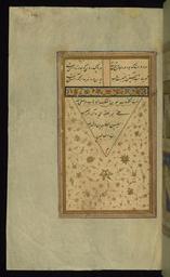 | Keywords: Hafiz - Illuminated Tailpiece and Colophon - Walters W634199A - Full Page.jpg This illuminated tailpiece from Walters manuscript W 634 contains the final verses of the Divan and a colophon with prayers for the prophet Muhammad and his family 10th century AH/AD 16th century Safavid ink pigments laid paper cm 23 5 14 5 accession number W 634 199A 81410 Henry Walters Baltimore date and mode of acquisition unknown Walters Art Museum Henry Walters Acquired by Henry Walters Transliteration place of origin Iran Walters Art Museum license 2D Divan by Hafez Safavid Walters MS 634 |