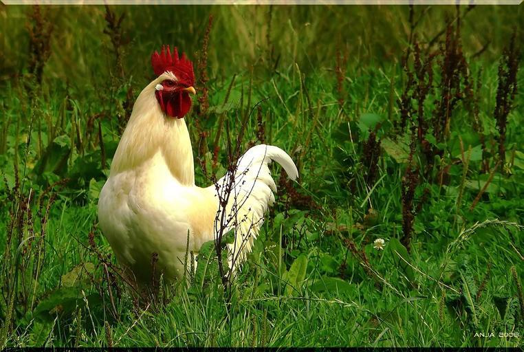 | Keywords: hahn cocks animal bird geglügel cockscomb poultry comb teeth gockel gallus gallus domesticus animals bill feather wildlife photography birds spring dress plumage spring pride fauna animal world nature creature meadow grass grasses free running free range white red |