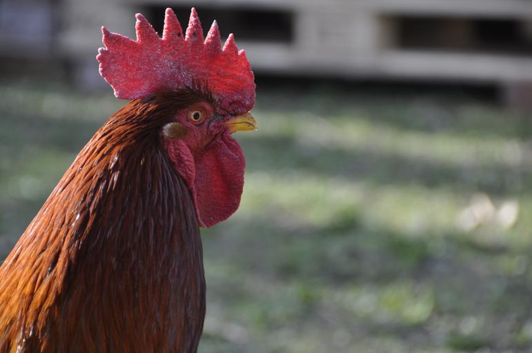 Keywords: hahn pride chicken poultry feather beautiful portrait pet crow red ridge gockel