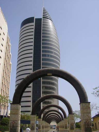 Keywords: Haifatower.jpg Sail or Rocket building in Haifa Israel מגד ה מפרש או הטי בחיפה ישרא מכונה ג בניין ב' בקריית הממש ה ע ש יצחק רבין Own 2005-04-14 Almog he Hebrew Wikipedia א מוג Sail Tower
