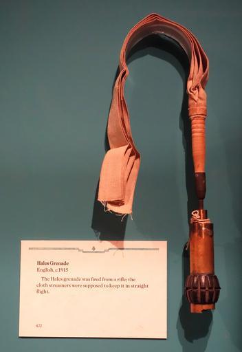 Keywords: Hales Grenade, England, c. 1915 - Glenbow Museum - DSC00802.JPG en Exhibit in the Glenbow Museum 130 9th Ave S E Calgary Alberta Canada This work is in the public domain Photography was permitted in the museum without restriction 2013-09-21 12 15 21 own Daderot cc-zero Weapons in the Glenbow Museum Uploaded with UploadWizard Hales rifle grenade |