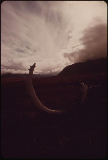Keywords: HALF OF A PARTIALLY GNAWED, WEATHERED CARIBOU RACK NEAR MILE 140. STORM CLOUDS ARE BEGINNING TO FILL THE ATIGUN... - NARA - 550496.jpg Scope and content General notes 550496 Local identifier 412-DA-8011 Environmental Protection Agency 12/02/1970 - NARA-Author Cowals Dennis 1945- Photographer 2196327 <br /> Alaska 4189566 65 -153 <br /> Still Picture Records Section Special Media Archives Services Division NWCS-S National Archives at College Park 8601 Adelphi Road College Park MD 20740-6001 08/1973 Record group Record Group 412 Records of the Environmental Protection Agency 1944 - 2006 Record group ARC 708 DOCUMERICA The Environmental Protection Agency's Program to Photographically Document Subjects of Environmental Concern compiled 1972 - 1977 Series ARC 542493 File unit File unit ARC Variant control numbers Agency-Assigned Identifier 134/31/008011<br /> NAIL Control Number NWDNS-412-DA-8011 Other versions <gallery> File HALF_OF_A_PARTIALLY_GNAWED _WEATHERED_CARIBOU_RACK_NEAR_MILE_140 _STORM_CLOUDS_ARE_BEGINNING_TO_FILL_THE_ATIGUN _-_NARA_-_550496 tif tif File HALF_OF_A_PARTIALLY_GNAWED _WEATHERED_CARIBOU_RACK_NEAR_MILE_140 _STORM_CLOUDS_ARE_BEGINNING_TO_FILL_THE_ATIGUN _-_NARA_-_550496 jpg jpg </gallery> NARA-cooperation PD-USGov Dennis Cowals Arctic National Wildlife Refuge Rangifer tarandus antlers |
