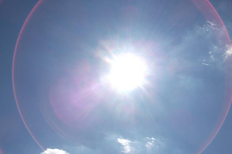 Keywords: halo sun light rays sky clouds blue summer heat hitzefrei