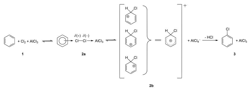MAKE A MEME View Large Image Halogenation of benzene.svg en Halogenation of benzene 1 with cloride to Chlorobenzene 3 de Halogenierung von Benzol 1 mit Chlor zu Chlorbenzol 3 own Yikrazuul 2008-10-14 Electrophilic aromatic halogenation reactions Aromatics Reactions of ...