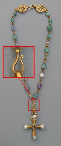 | Keywords: Halskette mit Kreuzanhänger byzantinisch - bail closeup.jpg Halskette mit Kreuzanhänger; Gold/Perlen/Edelsteine; Oströmisches Reich 6 /7 Jh n Chr Museum für Byzantinische Kunst Inv 2/72; erworben 1972 Bode-Museum Berlin Necklace with cross; gold/pearls/gems; Byzantine Empire; 6th/7th century AD Museum für Byzantinische Kunst Inv 2/72; acquired in 1972 Bode-Museum Berlin Showing close up of bail attaching cross to necklace Halskette_mit_Kreuzanhänger_byzantinisch jpg 2012-01-12 04 07 UTC Halskette_mit_Kreuzanhänger_byzantinisch jpg Photo Andreas Praefcke derivative work Dcoetzee <span class signature-talk >talk</span> Byzantine art in Germany Cross chains Museum für Byzantinische Kunst Byzantine jewellery in Germany Necklaces with crosses |