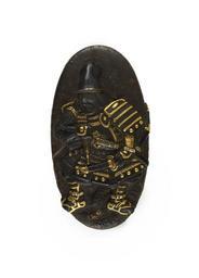 Keywords: Hamano Masayoshi - Kashira with Samurai - Walters 511037.jpg A samurai is in full armor This is part of a set with Walters 51 1036 century 19 late Edo iron copper gold cm 3 3 l accession number 51 1037 14302 William T / Henry Walters Collection Baltimore date and mode of acquisition unknown Walters Art Museum Henry Walters Acquired by William T or Henry Walters none place of origin Edo present-day Tokyo Japan Walters Art Museum license Kashira in the Walters Art Museum Hamano Masayoshi Media contributed by the Walters Art Museum needs category review Depictions of samurai in art |
