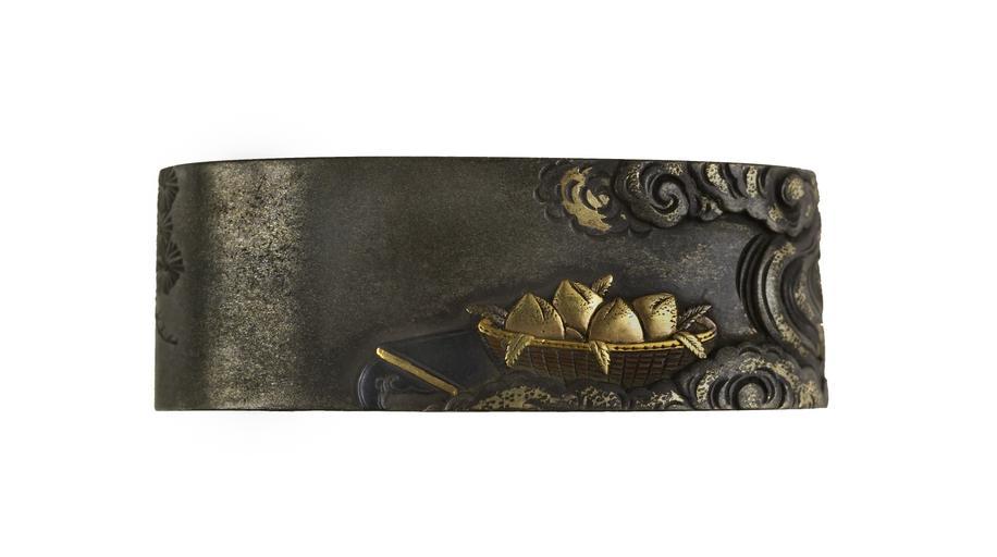 | Keywords: Hamano Naoyuki - Fuchi with Basket of Peaches on a Table - Walters 511034.jpg At the right a basket with four peaches is depicted on a Chinese style writing table Clouds swirl around the right of the table Peaches are a symbol of longevity because peaches from a mythical garden were said to give immortality to those who ate them This is part of a set with Walters 51 1035 between 1773 1829 Edo shibuichi gold cm 3 7 l accession number 51 1034 33211 William T / Henry Walters Collection Baltimore date and mode of acquisition unknown Walters Art Museum Henry Walters Acquired by William T or Henry Walters Signature Yôryûken Naoyuki; Number In pencil 826 place of origin Niigata Japan Walters Art Museum license Fuchi in the Walters Art Museum Hamano Naoyuki Media contributed by the Walters Art Museum needs category review Peaches in art |