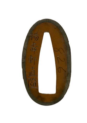 | Keywords: Hamano Naoyuki - Fuchi with Basket of Peaches on a Table - Walters 511034 - Mark A.jpg At the right a basket with four peaches is depicted on a Chinese style writing table Clouds swirl around the right of the table Peaches are a symbol of longevity because peaches from a mythical garden were said to give immortality to those who ate them This is part of a set with Walters 51 1035 between 1773 1829 Edo shibuichi gold cm 3 7 l accession number 51 1034 33211 William T / Henry Walters Collection Baltimore date and mode of acquisition unknown Walters Art Museum Henry Walters Acquired by William T or Henry Walters Signature Yôryûken Naoyuki; Number In pencil 826 place of origin Niigata Japan Walters Art Museum license Fuchi in the Walters Art Museum Hamano Naoyuki Media contributed by the Walters Art Museum needs category review |