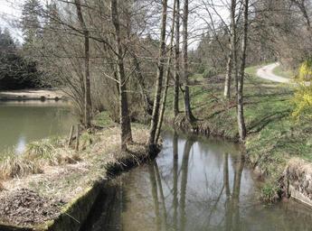 | Keywords: Hambach neben dem Hambachsägmühlweiher.jpg  Der von einem kleinen Wehr in Fortsetzung der Dammlinie des Mühlweihers angestaute Hambach an der Bühlerzeller Hambachsägmühle flussaufwärts gesehen own 2011-04-03 Brtlwr2 <span class signature-talk >talk</span> 48 58 45 91 N 09 53 46 81 E region DE_heading WSW Cc-zero Hambach Klingenbach Bühlerzell |