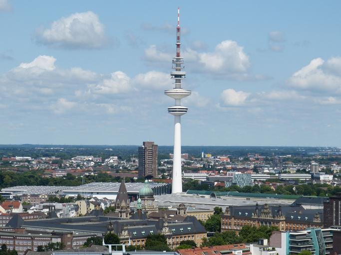 Keywords: hamburg city hanseatic city germany building tower michel outlook views tv tower fair exhibition halls
