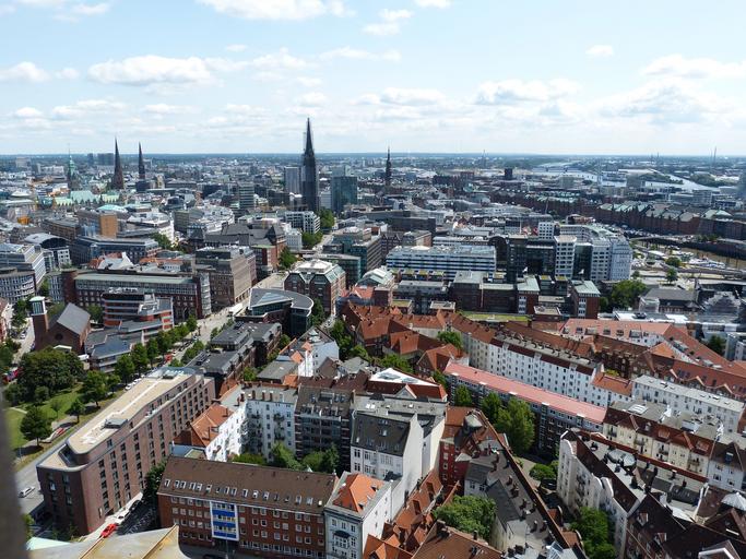Keywords: hamburg city hanseatic city germany building tower michel outlook views river elbe port speicherstadt view church roofs city view homes