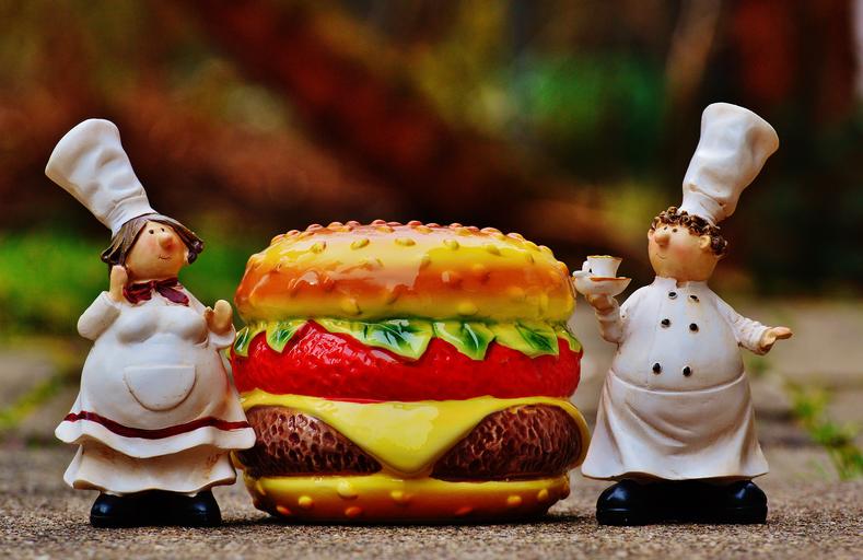 Keywords: hamburger cheeseburger cooking funny food preparation chef's hat fig sweet figures cook order call delicious eat cute