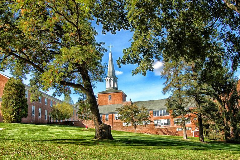 Keywords: hamilton massachusetts gordon conway seminary college buildings architecture campus school trees grass lawn sky clouds church summer spring hdr