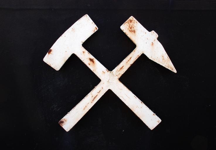 Keywords: hammers and iron ruhr area pott coal pot bill mining industry carbon historically hard coal industrial heritage sticks mallets iron