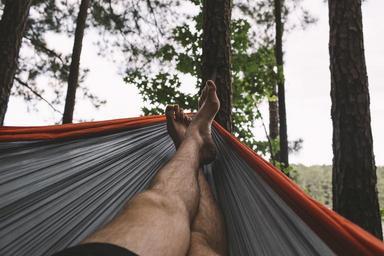 Keywords: hammock man foot rest forest