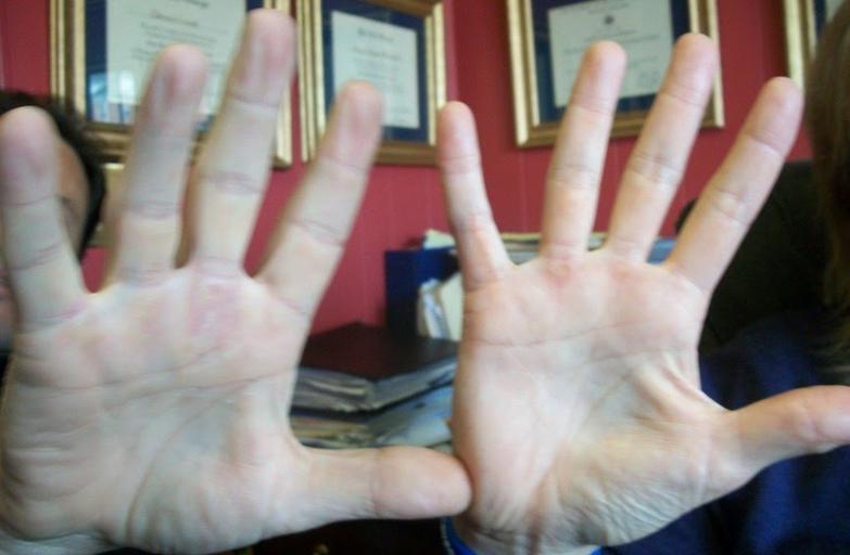 Keywords: Hand comparison.jpg en Dr Karyn Marshall hand on right comparing her hand size with Dr Dennis Cronk left Marshall credits her large hand size for helping her win the womens' world weightlifting title in 1987 own Tomwsulcer 2011-03-24 Photos are public domain; see http //knol google com/k/thomas-sulcer/amazing-humans-dr-karyn-marshall/38jyd65oa42fm/25 here public domain or pd under caption Photos used by permission; questions contact Dr Marshall at http //www championchiro com/chiro-edu htm Champion Chiropractic or email drkmarshall aol com or my Wikipedia talk page -- tom sulcer Cc-zero Karyn Marshall Chiropractic Palm hand |
