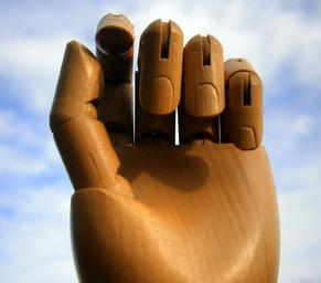 Keywords: hand finger links hand wood joints joint art perspective draw paint painting artist viewing observation perception decoration deco sky clouds background blue close