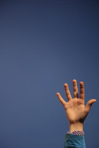 Keywords: hand sky child blue children fingers