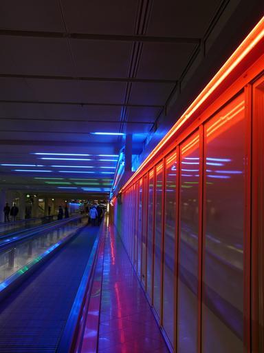 Keywords: handrails moving walkway roller platform treadmill moving sidewalk rolling pavement means of rail transport escalator metal segments neon blue airport business trip light movement roll band transport futuristic strange means of transport facilitate pavement