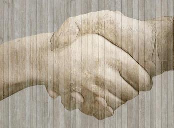 Keywords: handshake hands wood fence border grunge brown shaking hands together cooperation