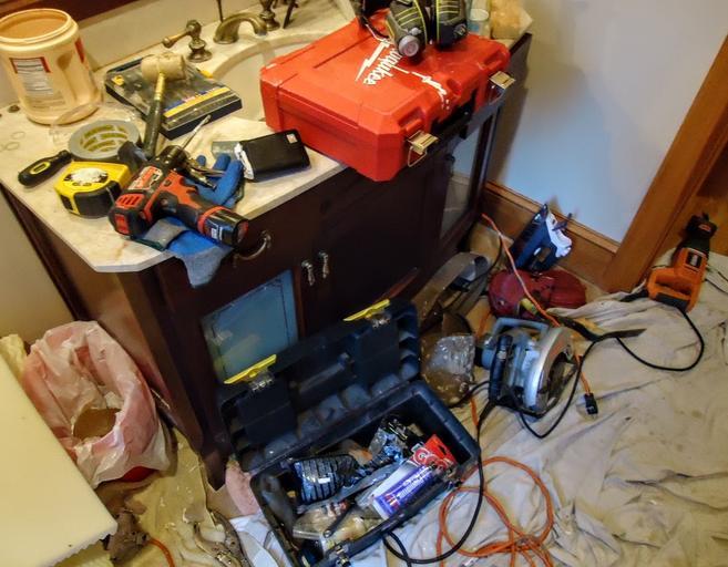 Keywords: Handyman photos Fix Barber Wilson diverter valve 8.JPG en This project required many of my handyman tools -- sawsall drill-driver tape measure -- all spread out in this bathroom Background This is image 8 of a repair project to fix a shower/tub diverter valve made by Barber Wilsons Co Ltd The handle which was supposed to divert water to the shower but it did not work; a plastic piece inside was broken Unfortunately since this valve could not be fixed from the front it required a major operation to open up the back and replace pipes I ended up replacing the defective valve with a Price Pfister valve-set so in future repairs will be easy 2015-09-18 own Tomwsulcer other versions cc-zero Uploaded with UploadWizard Handyman photos by tom sulcer Tools |