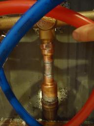 Keywords: Handyman photos Fix Barber Wilson diverter valve 20.JPG en Here the tub downspout has been attached Soon supporting wood will be added to strengthen it Background This is image 20 of a repair project to fix a shower/tub diverter valve made by Barber Wilsons Co Ltd The handle which was supposed to divert water to the shower but it did not work; a plastic piece inside was broken Unfortunately since this valve could not be fixed from the front it required a major operation to open up the back and replace pipes I ended up replacing the defective valve with a Price Pfister valve-set so in future repairs will be easy 2015-09-18 own Tomwsulcer other versions cc-zero Uploaded with UploadWizard Plumbing Handyman photos by tom sulcer |