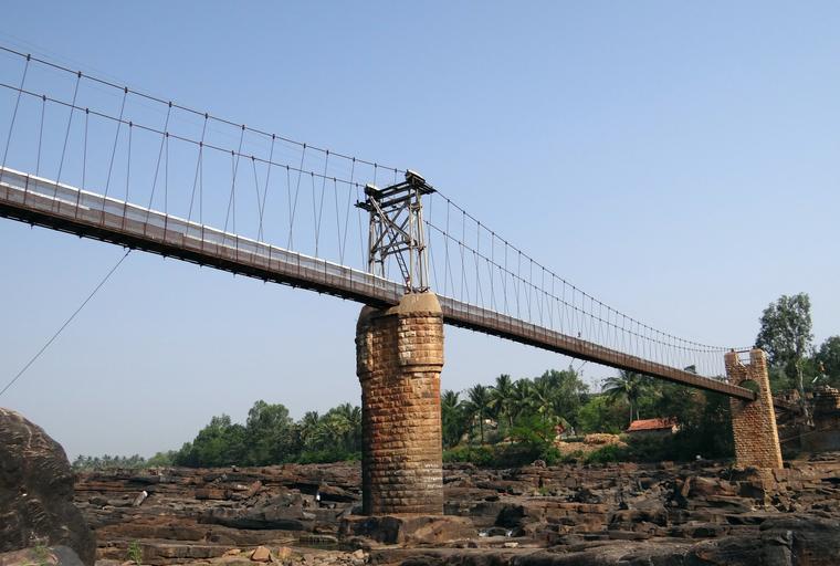 Keywords: hanging bridge bridge suspension bridge ghataprabha river ghataprabha river hanging cable steel construction sky architecture structure pillars footbridge pedestrian gokak india