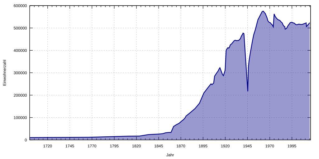 | Keywords: Hannover population.svg  en Hannover population statistics since 1700 de Einwohnerentwicklung von Hannover seit 1700 own ; data from de Einwohnerentwicklung_von_Hannover Gorgo 2011-03-06 Gnuplot script to generate this plot gnuplot <source lang gnuplot > /usr/bin/gnuplot gnuplot 4 2 / Ubuntu 8 10 input set timefmt d m Y set datafile separator ; output unset key set style data lines set style fill transparent solid 0 4 set grid set xdata time set xlabel 'Jahr' set xrange '01 01 1700' '31 12 2010' set xtics 788400000 set mxtics 5 set format x ' Y' set ylabel 'Einwohnerzahl' set ytics 100000 set format y ' 0f' set term svg size 800 400 font Arial 10 set output 'hannover_population svg' plot '-' using 1 2 with filledcurves below x1 lt rgb 'dark-blue' lw 2 30 06 1190;1500 30 06 1350;4000 30 06 1435;5000 30 06 1766;11874 30 06 1811;16816 30 06 1823;17199 30 06 1833;23761 03 12 1843;25916 03 12 1846;26896 03 12 1849;28030 03 12 1852;31876 03 12 1855;33148 03 12 1858;33467 03 12 1861;60120 03 12 1864;67815 03 12 1867;73952 01 12 1871;87626 31 12 1872;90404 31 12 1873;95167 31 12 1874;99930 01 12 1875;106677 01 12 1880;122843 01 12 1885;139731 01 12 1890;163593 02 12 1895;209535 01 12 1900;235666 31 12 1901;240962 31 12 1902;245901 31 12 1903;250408 31 12 1904;247059 01 12 1905;250032 31 12 1906;254261 31 12 1907;284849 31 12 1908;290858 31 12 1909;296867 01 12 1910;302375 31 12 1911;308300 31 12 1912;316292 31 12 1913;322432 01 12 1916;292165 05 12 1917;287072 08 10 1919;310431 31 12 1919;321200 31 12 1920;400300 31 12 1921;407400 31 12 1922;412100 31 12 1923;410000 31 12 1924;416600 16 06 1925;422745 31 12 1925;426200 31 12 1926;428300 31 12 1927;433500 31 12 1928;438000 31 12 1929;443000 31 12 1930;445200 31 12 1931;444700 31 12 1932;443100 16 06 1933;443920 31 12 1933;444184 31 12 1934;444130 31 12 1935;448157 31 12 1936;452251 31 12 1937;462214 31 12 1938;470100 17 05 1939;470950 31 12 1939;477100 31 12 1940;474800 30 04 1945;217000 31 12 1945;325841 29 10 1946;354955 31 12 1947;384240 13 09 1950;444296 31 12 1951;469300 31 12 1952;482253 31 12 1953;495130 25 09 1956;536810 06 06 1961;572917 31 12 1961;574481 31 12 1962;574754 31 12 1963;568766 31 12 1964;565104 31 12 1965;555228 31 12 1966;545468 31 12 1967;531706 31 12 1968;526975 31 12 1969;523874 27 05 1970;523941 31 12 1970;522098 31 12 1971;516744 31 12 1972;513480 31 12 1973;505106 31 12 1974;562951 31 12 1975;552955 31 12 1976;547077 31 12 1977;542134 31 12 1978;538243 31 12 1979;535854 31 12 1980;534623 31 12 1981;531319 31 12 1982;526253 31 12 1983;523033 31 12 1984;514010 31 12 1985;508298 31 12 1986;505718 25 05 1987;494864 31 12 1987;495867 31 12 1988;498495 31 12 1989;505872 31 12 1990;513010 31 12 1991;517476 31 12 1992;523627 31 12 1993;524823 31 12 1994;525763 31 12 1995;523147 31 12 1996;522574 31 12 1997;520670 31 12 1998;516157 31 12 1999;514718 31 12 2000;515001 31 12 2001;516415 31 12 2002;517310 31 12 2003;516160 31 12 2004;515841 31 12 2005;515729 31 12 2006;516343 31 12 2007;518069 31 12 2008;519619 31 12 2009;520966 30 06 2010;520936 e </source> Cc-zero Temporal population graphs of Lower Saxony Hanover History of Hannover Images with Gnuplot source code |