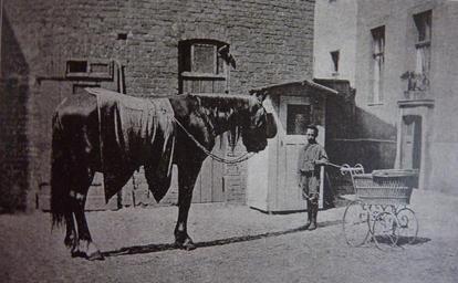 Keywords: Hans Kraftübertragung.jpg Experiment zum Verständnis von Kraft und Kraftübertragung mit dem klugen Hans Karl Krall Denkende Tiere S 441 spätestens 1909 Karl Krall s u PD-old Clever Hans Black and white photographs of Germany