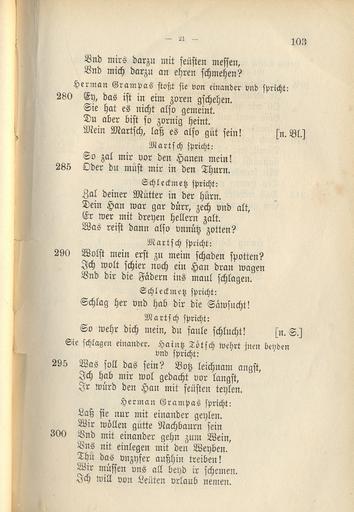 Keywords: Hans Sachs Goetze Bd2 S103.jpg 2 102 104 Goetze - Sämmtliche Fastnachtspiele von Hans Sachs - Band 2 Der gestohlne Fastnachthahn