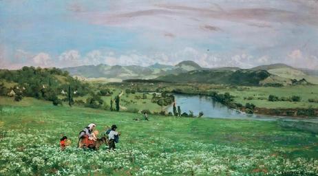 | Keywords: Hans Thoma - Der Rhein bei Säckingen.jpg Artwork Creator Hans Thoma de Am jenseitigen Ufer das Städtchen Nieder-Mumpf im Hintergrund die Berge des Schweizer Jura Thoma übernahm dieses Motiv viermal mit variierter Personenstaffage 1873 oil canvas cm 63 5 112 5 Alte Nationalgalerie object history 1905 Ankauf aus Mitteln des Kiß'schen Stiftungsfonds vom Verlagsbuchhändler Karl E Trülnez in Straßburg credit line accession number A I 851 1 02531982 2 20004322584 PD-old-auto-1923 1924 DEFAULTSORT Thoma Hans; Landscape Rhine near Säckingen 1873 Alte Nationalgalerie Landscape paintings by Hans Thoma Paintings in the Alte Nationalgalerie History of Bad Säckingen Landscape paintings of Germany 1873 paintings 19th-century oil on canvas paintings in Germany 1870s landscape paintings Paintings of the Rhine |