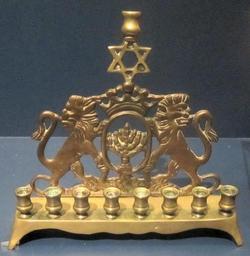 Keywords: Hanukkah menorah, Russia, 1890, brass, National Museum of American Jewish History.JPG en Hanukkah menorah Russia 1890 brass National Museum of American Jewish History own Wmpearl photo 2011 Cc-zero National Museum of American Jewish History Hanukiah |