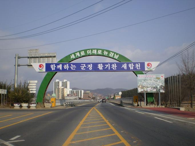 Keywords: Hapcheon gate.jpg City gate above the Hwang River bridge in Hapcheon Gyeongsangnam-do South Korea Own 2007-01-28 Taken by User Visviva and released into the public domain Hapcheon Gates in South Korea