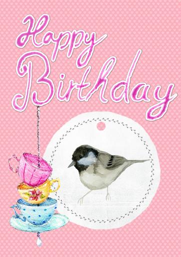 Keywords: happy birthday card greeting pink bird girl teacup celebration event happy birthday happy birthday card party cake design family fun gift colorful happiness humor joy joyful day invitation birthday card anniversary age drawing