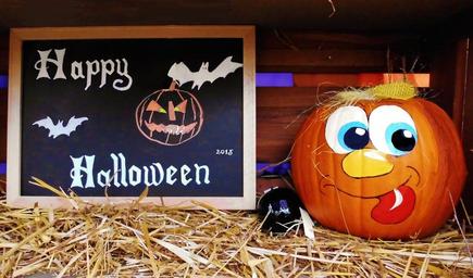 Keywords: happy halloween greeting pumpkin board funny autumn decoration pumpkin face deco