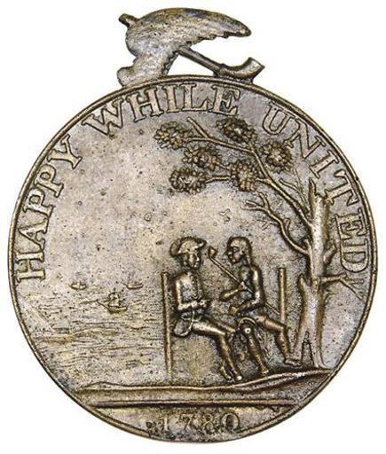 | Keywords: Happy While United colonial medal.jpg en Happy While United was the slogan on a medal coined by the State of Virginia in 1780 First envisioned by Thomas Jefferson the medal was minted and designed to be given to Indian signatories to the treaties Jefferson planned with the First Peoples of Virginia Some of the bronze medals were given to General Joseph Martin agent to the Cherokees for distribution by Martin to Cherokee chiefs The medal portrays a Virginia colonial sitting enjoying a peace pipe with a Native American The obverse portrays a variation of the Virginia state seal of the state symbol standing triumphant over a slain enemy with the legend Rebellion to Tyrants is Obedience to God The state's motto is 'Sic Semper Tyranus' 'And Thus Always to Tyrants ' File Rebellion to Tyrants colonial medal Virginia jpg Summary http //www stacks com/lotdetail aspx lsid AN00000673 asid lrid AN00116589 State of Virginia Robert Scot 1780 150px Cherokee Nation History of Virginia Joseph Martin general PD-old-100 |