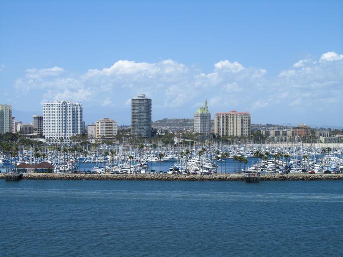 Keywords: harbor long beach boats ocean water sky sea coast scenic outdoor port colorful california city horizon architecture bay blue