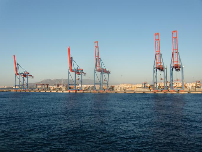 Keywords: harbour cranes sea crane port cargo container spain seaport