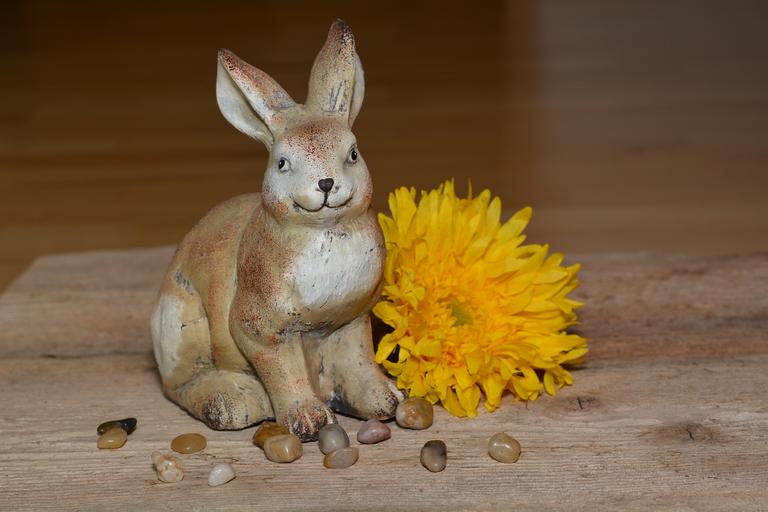 Keywords: hare dekohase easter bunny flower blossom bloom dekoblume yellow stones wood decoration deco decorative