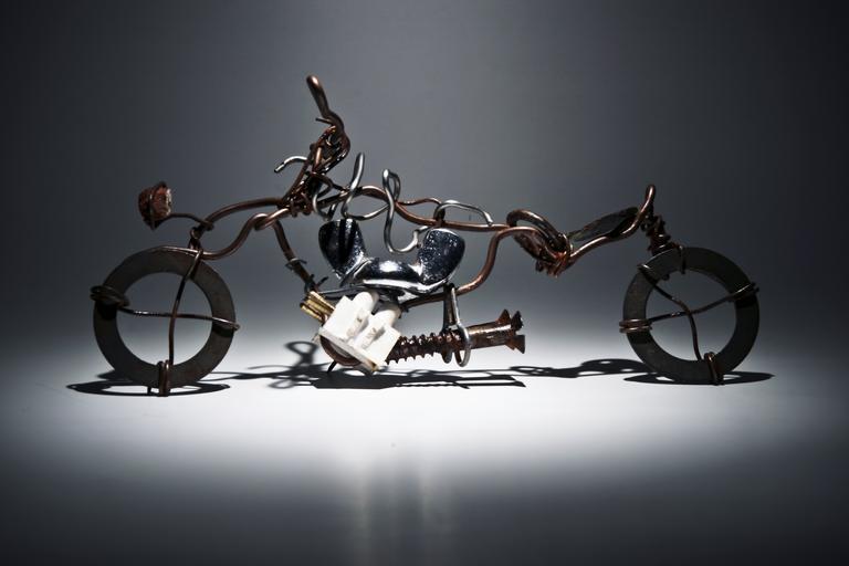 Keywords: harley davidson motorbike arts iron metal miniature moto motorcycle sculpture toy wire