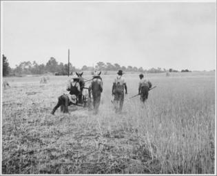 | Keywords: Harmony Community, Putnam County, Georgia.... Binders are not uncommon on large farms, but those who . . . - NARA - 521331.jpg Scope and content Full caption reads as follows Harmony Community Putnam County Georgia Binders are not uncommon on large farms but those who can handle all their small grains by hand continue to do so These African-American tenants have made a sort of mechanical cradle out of an old mowing machine with a piece of corrugated iron rigged behind the cutter bar to catch the fallen stalks One man walks along side with a stick and sweeps the standing grain back over the cutter while two others pick it out of the tin cradle and bind it General notes 521331 Local identifier 83-G-41018 Department of Agriculture Bureau of Agricultural Economics Division of Economic Information ca 1922 - ca 1953 NARA-Author Rusinow Irving Photographer 5307166 <br /> Still Picture Records Section Special Media Archives Services Division NWCS-S National Archives at College Park 8601 Adelphi Road College Park MD 20740-6001 1941 05 28 - 1941 06 01 Record group Record Group 83 Records of the Bureau of Agricultural Economics 1876 - 1959 Record group ARC 412 Photographic Prints Documenting Programs and Activities of the Bureau of Agricultural Economics and Predecessor Agencies compiled ca 1922 - ca 1947 documenting the period ca 1911 - ca 1947 Series ARC 521048 File unit File unit ARC Variant control numbers NAIL Control Number NWDNS-83-G-41018 Other versions <gallery> File Harmony_Community _Putnam_County _Georgia _Binders_are_not_uncommon_on_large_farms _but_those_who_ _ _ _-_NARA_-_521331 tif tif File Harmony_Community _Putnam_County _Georgia _Binders_are_not_uncommon_on_large_farms _but_those_who_ _ _ _-_NARA_-_521331 jpg jpg </gallery> NARA-cooperation PD-USGov Irving Rusinow Putnam County Georgia |