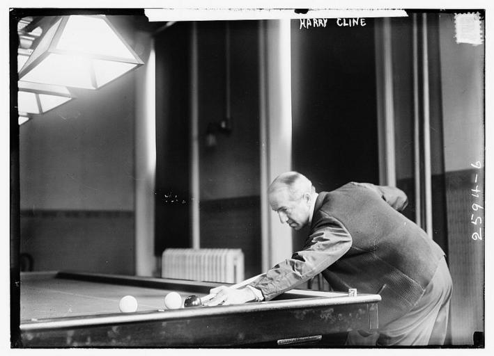 | Keywords: Harry Cline (LOC).jpg Bain News Service publisher Harry Cline between ca 1910 and ca 1915 1 negative glass ; 5 x 7 in or smaller Notes Title from unverified data provided by the Bain News Service on the negatives or caption cards Forms part of George Grantham Bain Collection Library of Congress Format Glass negatives Rights Info No known restrictions on publication Repository Library of Congress Prints and Photographs Division Washington D C 20540 USA http //hdl loc gov/loc pnp/pp print hdl loc gov/loc pnp/pp print General information about the Bain Collection is available at http //hdl loc gov/loc pnp/pp ggbain hdl loc gov/loc pnp/pp ggbain Persistent URL http //hdl loc gov/loc pnp/ggbain 12188 hdl loc gov/loc pnp/ggbain 12188 Call Number LC-B2- 2594-6 http //www flickr com/photos/library_of_congress/2968836391/ Harry Cline LOC LOC-image ggbain 12188 http //www flickr com/people/8623220 N02 The Library of Congress http //www loc gov/rr/print/195_copr html noknown The Library of Congress Flickr Commons PD-Bain The Library of Congress http //flickr com/photos/8623220 N02/2968836391 2012-10-11 18 51 08 pd Sportspeople from the United States Pool players |